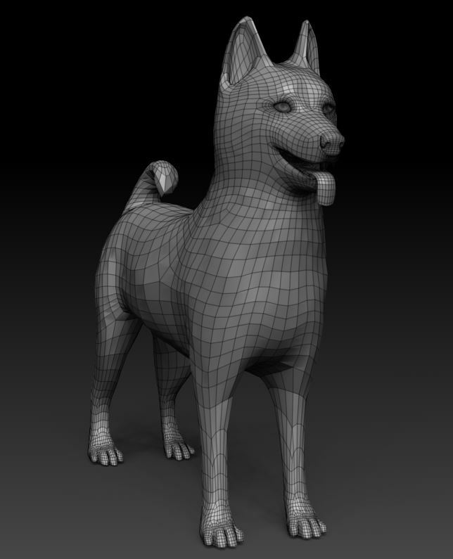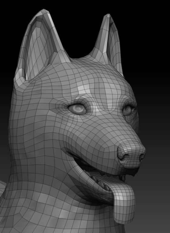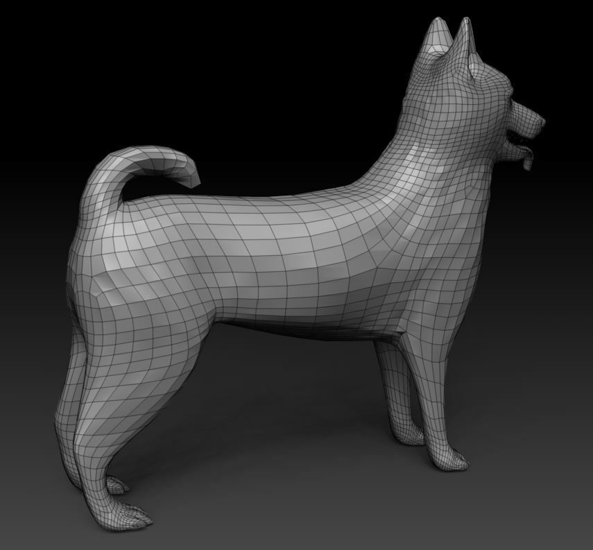 Topologically accurate, low res and high res version of a dog.